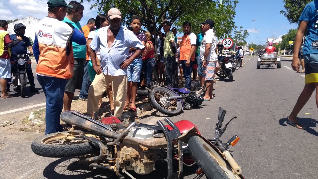 próximo ao DP do município. Na ocasião ocorreu um choque entre duas motos, uma(Vermelha)